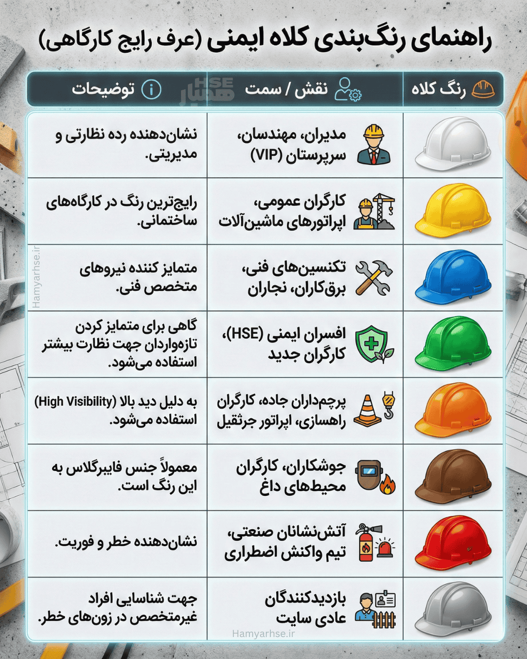 - کاربرد: کلاههای عمومی ساختمانی و صنعتی.