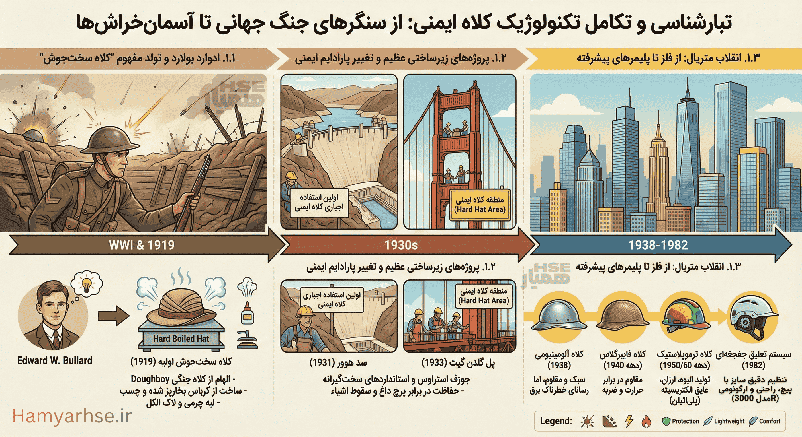 تبارشناسی و تکامل تکنولوژیک کلاه ایمنی: از سنگرهای جنگ جهانی تا آسمانخراشها